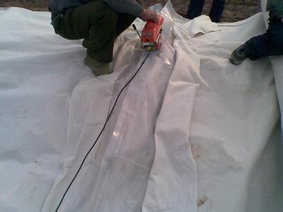 5、施工時,應避免石塊,重物直接砸在土工膜上、最好邊施工、邊鋪設膜、邊覆蓋保護層。