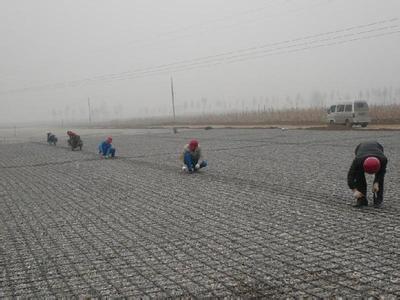 3、接鋪:以卷長為單位作為鋪設(shè)的段長,應(yīng)鋪格柵的段長內(nèi)鋪滿以后,再整體檢查一次鋪設(shè)質(zhì)量,然后接著鋪設(shè)下一段,下一段鋪設(shè)時,格柵與格柵以重疊一個網(wǎng)格凈距為搭接長度,并用綁線固定后繼續(xù)向前進方向鋪第二段。依次類推,操作要求同前。