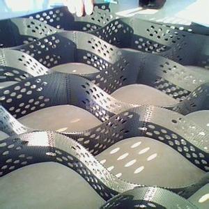 土工格室是由高強(qiáng)度的HDPE或PP共聚料寬帶,經(jīng)過強(qiáng)力焊接或鉚接而形成的一片網(wǎng)狀格室結(jié)構(gòu)。它伸縮自如,運(yùn)輸時(shí)可縮疊起來,使用時(shí)張開并又充填土石或混凝土料,構(gòu)成具有強(qiáng)大側(cè)向限制和大剛度的結(jié)構(gòu)體。它可用來做為墊層,處理軟弱地基增大地基的承載能力,也可鋪設(shè)在坡面上構(gòu)成坡面防護(hù)結(jié)構(gòu),還可以用來建造支擋結(jié)構(gòu)等。