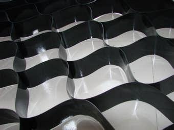 土工格室是由高強(qiáng)度的HDPE或PP共聚料寬帶,經(jīng)過(guò)強(qiáng)力焊接或鉚接而形成的一片網(wǎng)狀格室結(jié)構(gòu)。它伸縮自如,運(yùn)輸時(shí)可縮疊起來(lái),使用時(shí)張開(kāi)并又充填土石或混凝土料,構(gòu)成具有強(qiáng)大側(cè)向限制和大剛度的結(jié)構(gòu)體。它可用來(lái)做為墊層,處理軟弱地基增大地基的承載能力,也可鋪設(shè)在坡面上構(gòu)成坡面防護(hù)結(jié)構(gòu),還可以用來(lái)建造支擋結(jié)構(gòu)等。