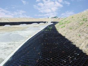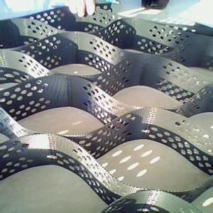 土工格室是由高強度的HDPE或PP共聚料寬帶,經(jīng)過強力焊接或鉚接而形成的一片網(wǎng)狀格室結(jié)構(gòu)。它伸縮自如,運輸時可縮疊起來,使用時張開并又充填土石或混凝土料,構(gòu)成具有強大側(cè)向限制和大剛度的結(jié)構(gòu)體。它可用來做為墊層,處理軟弱地基增大地基的承載能力,也可鋪設(shè)在坡面上構(gòu)成坡面防護結(jié)構(gòu),還可以用來建造支擋結(jié)構(gòu)等。